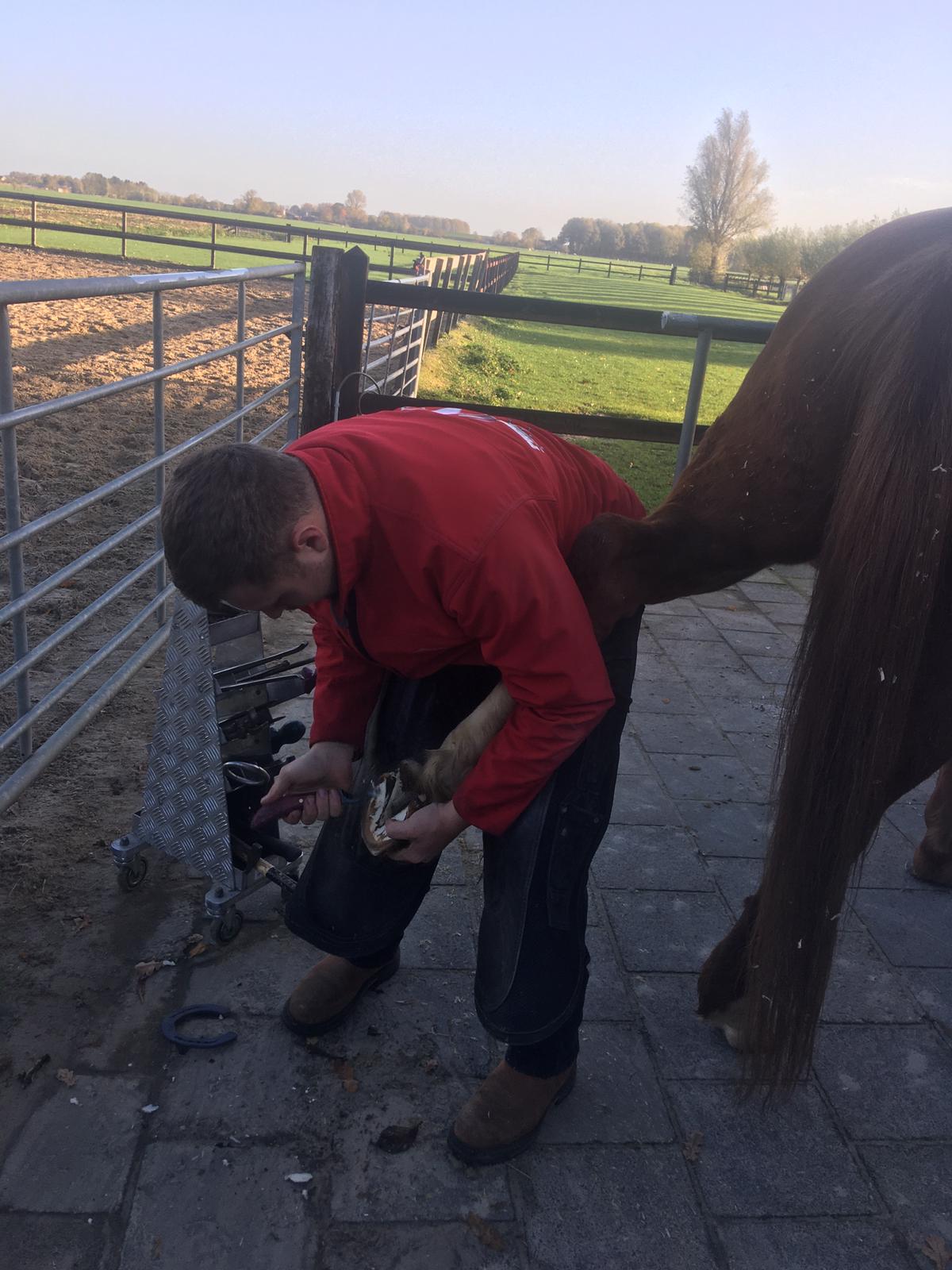 Het was dan ook leuk en leerzaam om mee te mogen lopen met de hoefsmid die voorheen onze eigen paarden deed beslaan.
